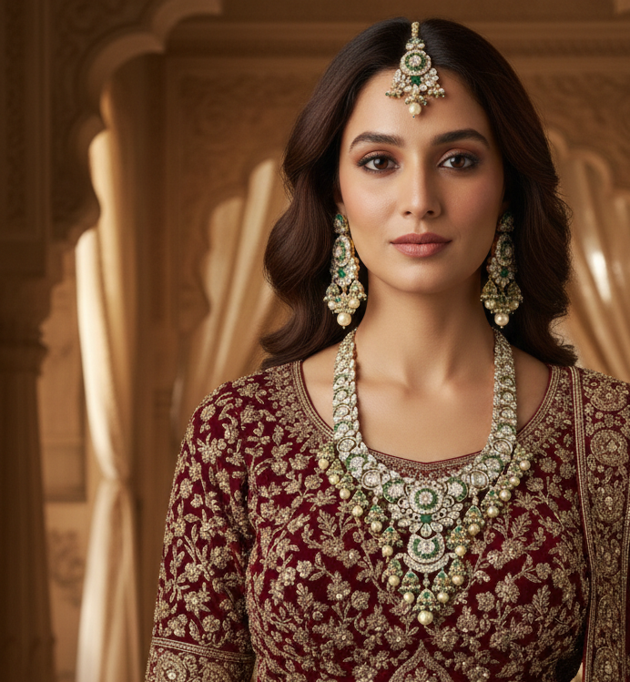 Perfect for wedding ceremonies and grand celebrations, this handcrafted heirloom piece reflects sophistication, heritage luxury, and enduring beauty—designed for brides who desire classic grace with royal allure.